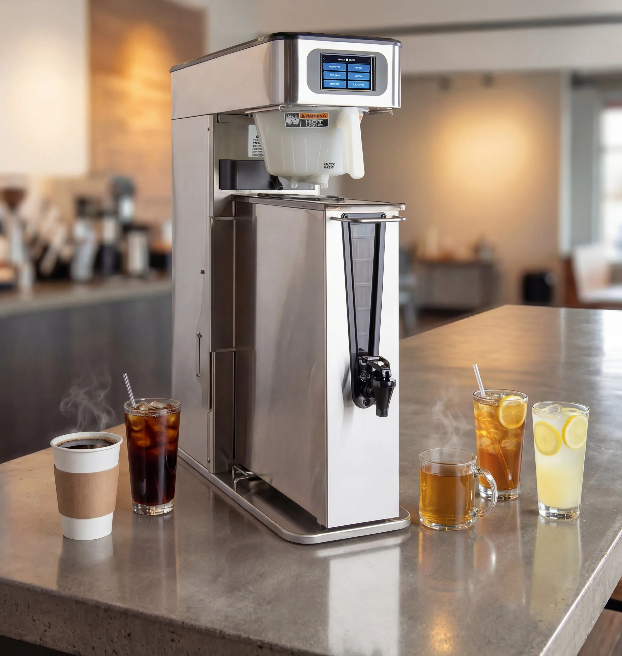 Platinum Pro is the ultimate brewing solution, designed to handle a wide variety of beverages in one compact system. From cold brew and iced coffee to hot coffee, tea, and lemonade, this versatile brewer delivers exceptional performance while freeing up counter space and simplifying operations.