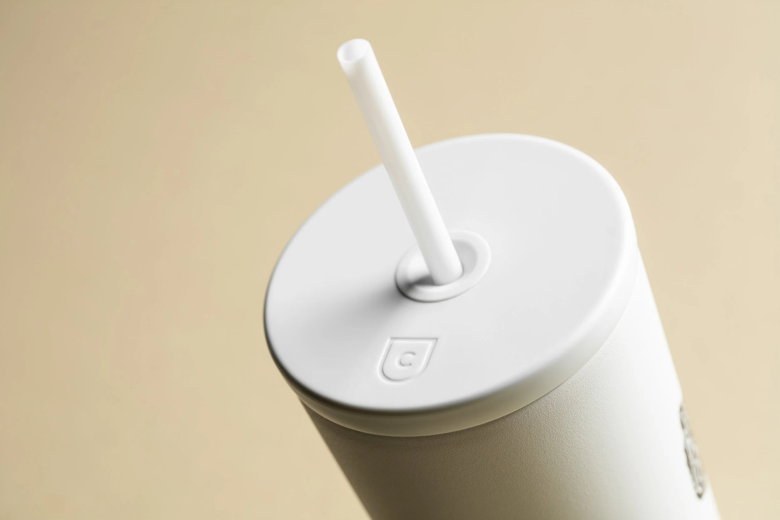 Our Cold Cup has a straw, a no sweat design and a twist-on lid. It fits in your cup holder (we promise) and it's globally minded & BPA free.