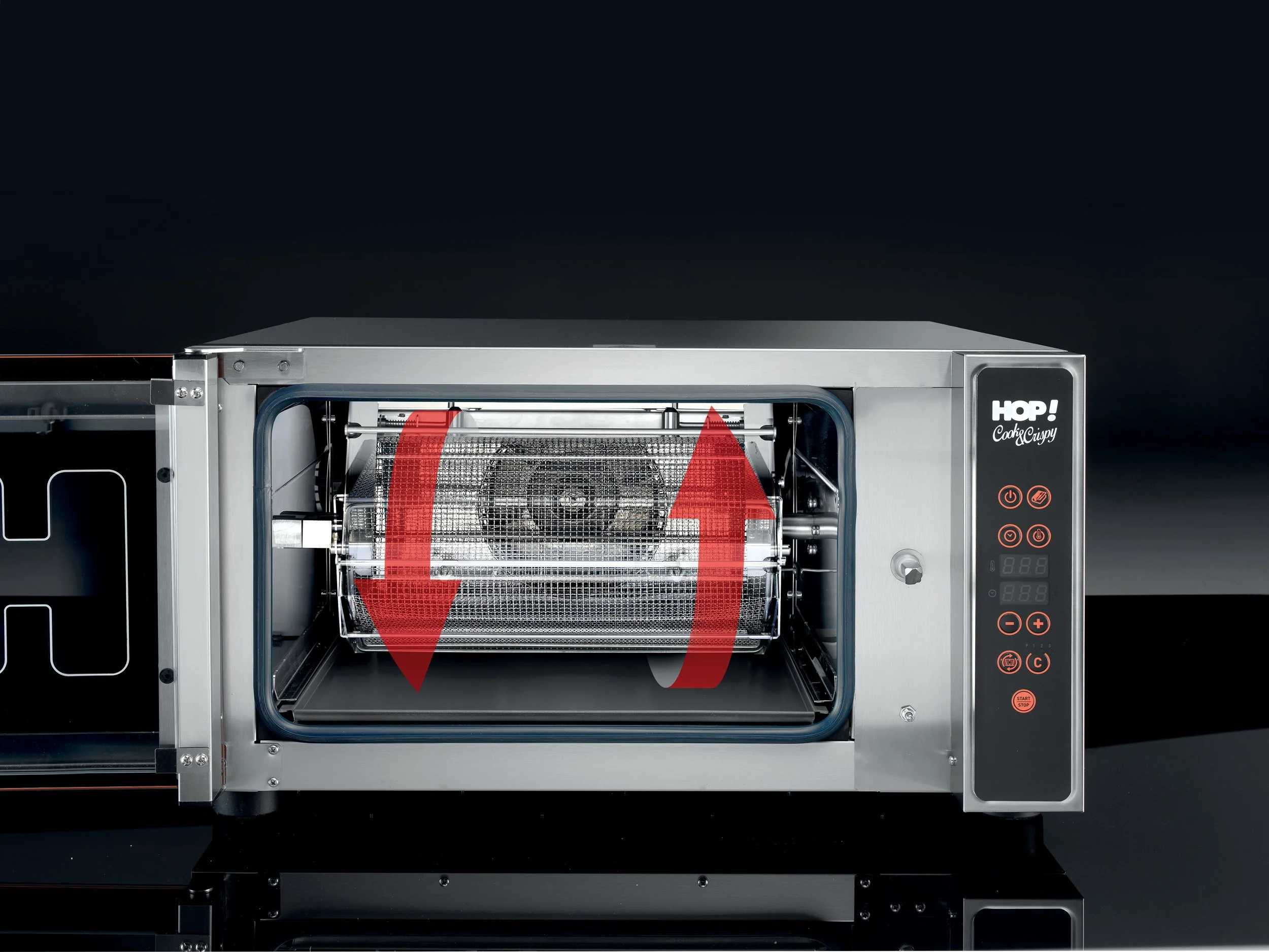 Transform the way your kitchen cooks with the HOP Commercial Air Fryer; engineered for consistency and healthier cooking with no oil. Whether you’re heating frozen favorites or producing fresh, crispy dishes, this pro-grade air fryer delivers fast results with unbeatable ease of use. Featuring a digital control panel with up to 100 programmable menus, rotating baskets for even cooking, and a built-in condensation system for crispier results, HOP helps staff work smarter — not harder. Its self-cleaning cycle and ventless design make daily maintenance a breeze, while Wi-Fi connectivity lets you upload and share cooking profiles across your operation.