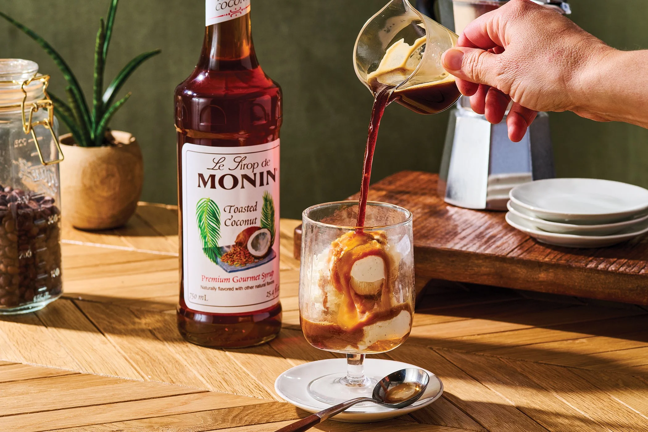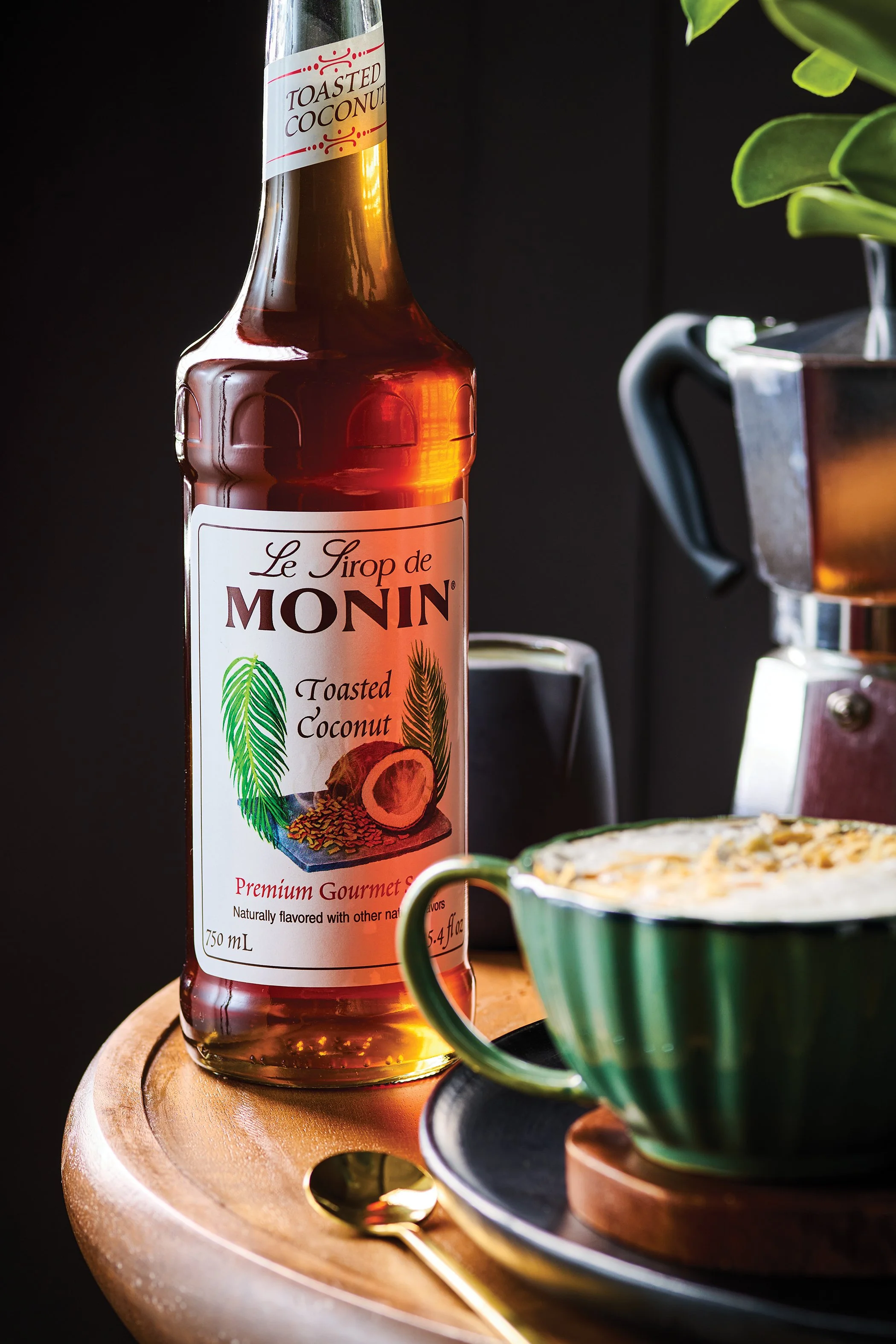 Monin Toasted Coconut Syrup adds a balanced blend of creamy coconut and golden toasted notes to all coffee applications.