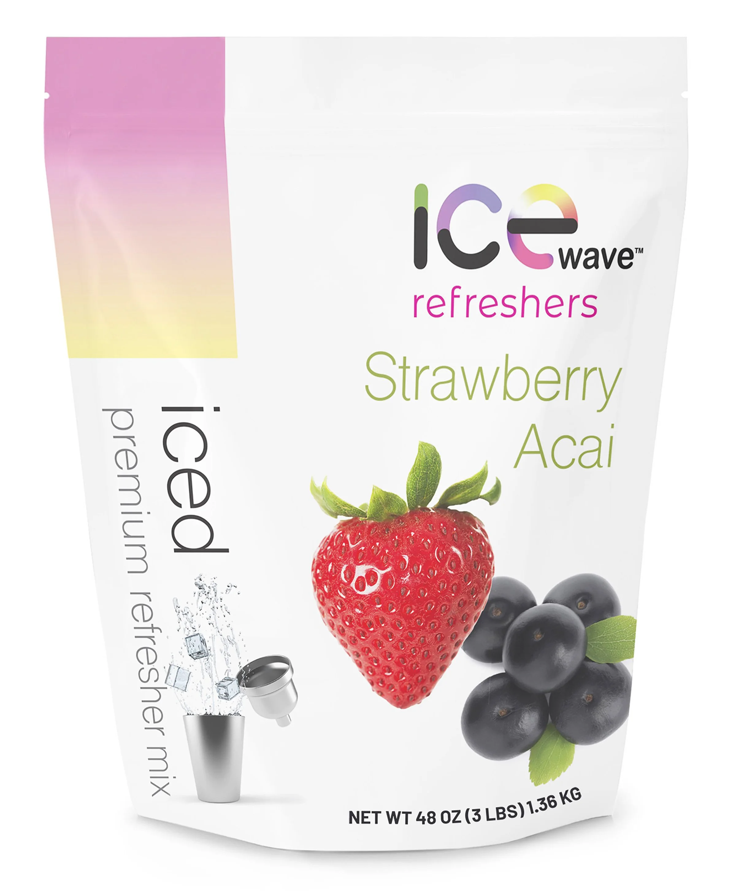 As cold beverages are now hitting 80% of coffee shop sales, ICEwave Premium Refreshers were created to provide independent coffee shops with a refresher that is superior to that offered by the leading coffee chain. Packed in 3-pound resealable pouches, ICEwave is a premium dry beverage mix available in Strawberry Acai, Mango Dragon Fruit, Blood Orange Pomegranate, Matcha, and Pineapple Passion Fruit. It is made from real fruit, cutting-edge natural sweetener technology, adaptogens for enhanced cognitive performance, and prebiotics for gut health. Most refresher products are sugar syrups that contain no real fruit. Using advanced freeze-drying technology, ICEwave is gently sweetened with natural non-sugar sweeteners from figs, jackfruit, and monk fruit. This results in a refresher bursting with real fruit flavor and 70% less sugar than the leading coffee chain refreshers. ICEwave is a fully functional beverage enhanced with chicory and cassava root prebiotic fiber to support gut health and coffee cherry extract to support mental clarity. ICEwave is easy to prepare. It is stored at room temperature, even after opening. There are no messy syrups, pumps, or complex recipes involved. Simply pour water and ice into a cocktail shaker, add a scoop of powder, shake, and pour!